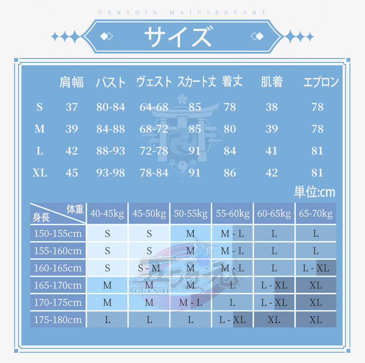 ①衣装は規定サイズ・規定数量でまとめて生産されていますので、サイズオーダー及びセット内容の一部を別サイズに変更する事は不可です。