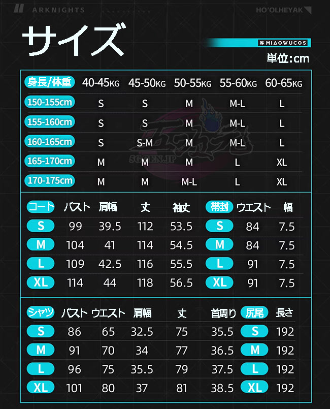 ①衣装は規定サイズ・規定数量でまとめて生産されていますので、サイズオーダー及びセット内容の一部を別サイズに変更する事は不可です。