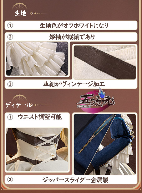 ※三分妄想は原神、アイデンティティⅤ、アークナイツなど多数なゲームやアニメ作品の衣装制作の実績を持つメーカーです。三分妄想の衣装のデザインは比較的に原作に忠実、作りも丁寧で高級感があります。その代わりに納期が比較的に長いです。納期の許容範囲内で高品質を求めるお客様にお勧めします。