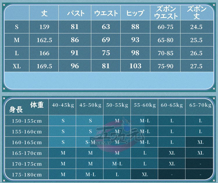 ①衣装は規定サイズ・規定数量でまとめて生産されていますので、サイズオーダー及びセット内容の一部を別サイズに変更する事は不可です。