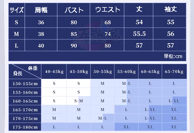 ①衣装は規定サイズ・規定数量でまとめて生産されていますので、サイズオーダー及びセット内容の一部を別サイズに変更する事は不可です。