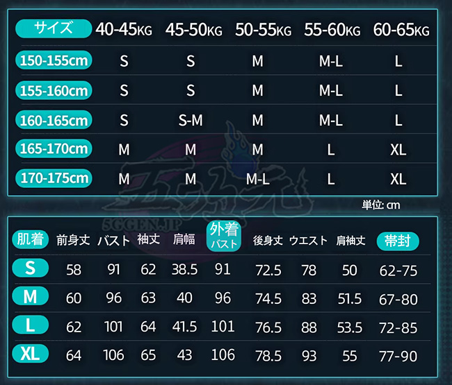 ①衣装は規定サイズ・規定数量でまとめて生産されていますので、サイズオーダー及びセット内容の一部を別サイズに変更する事は不可です。