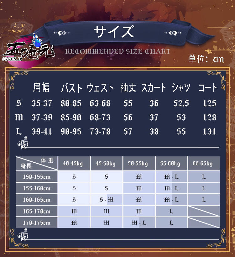 ①衣装は規定サイズ・規定数量でまとめて生産されていますので、サイズオーダー及びセット内容の一部を別サイズに変更する事は不可です。