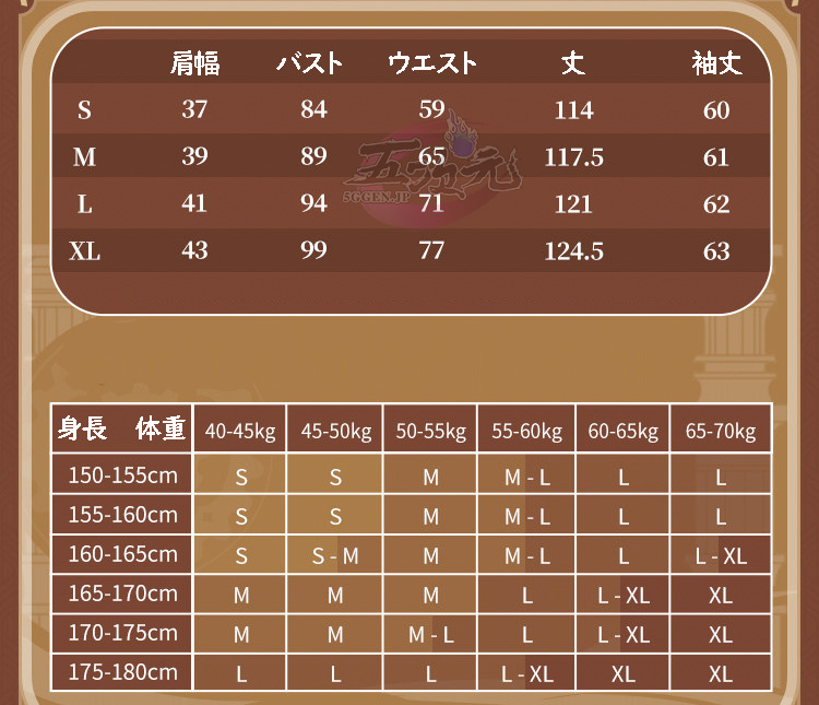 ①衣装は規定サイズ・規定数量でまとめて生産されていますので、サイズオーダー及びセット内容の一部を別サイズに変更する事は不可です。