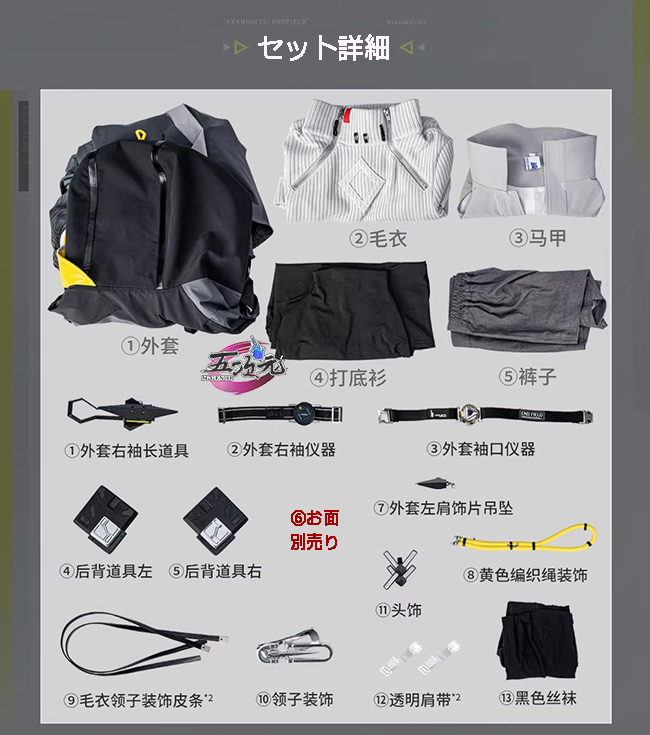 ①衣装は規定サイズ・規定数量でまとめて生産されていますので、サイズオーダー及びセット内容の一部を別サイズに変更する事は不可です。