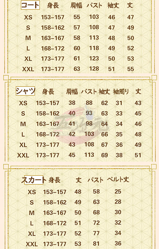 ※衣装はハンドメードのため、新品でも作成途中に細い汚れなどをつく可能性がありますので、それによる返品や交換は不可です。またサイズ選び間違いによる返品、交換も不可です。ご理解した上でご購入をお願い致します。